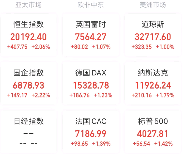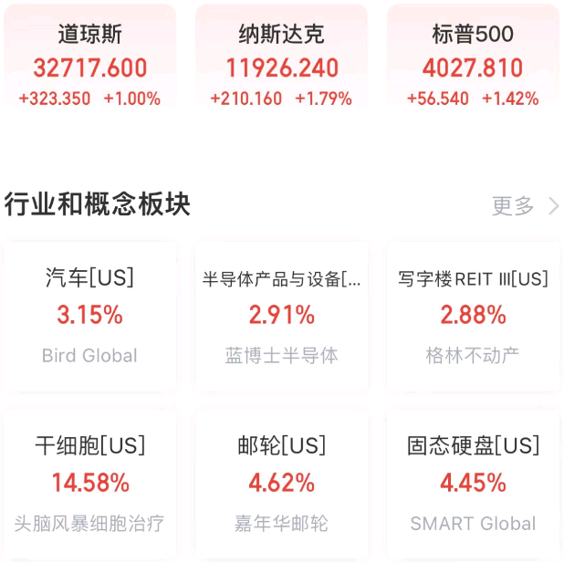 三大指数均涨超1%,本地时间周三,阿里巴巴涨1.52%,方针价也由255美元上调至304美元。